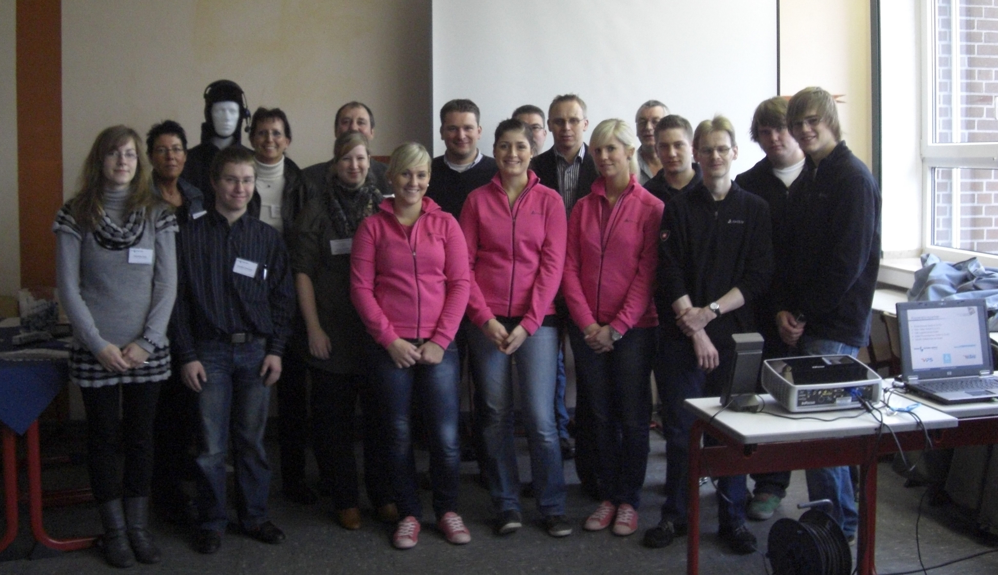Vorne links im Bild das WILMS-Team (li. die Auszubildende Madeleine Aarts, 3. v.li. der Auszubildende Sebastian Gehrmann) von Jutta Hilgenberg (2. v.li) als Repräsentantin des Unternehmens.